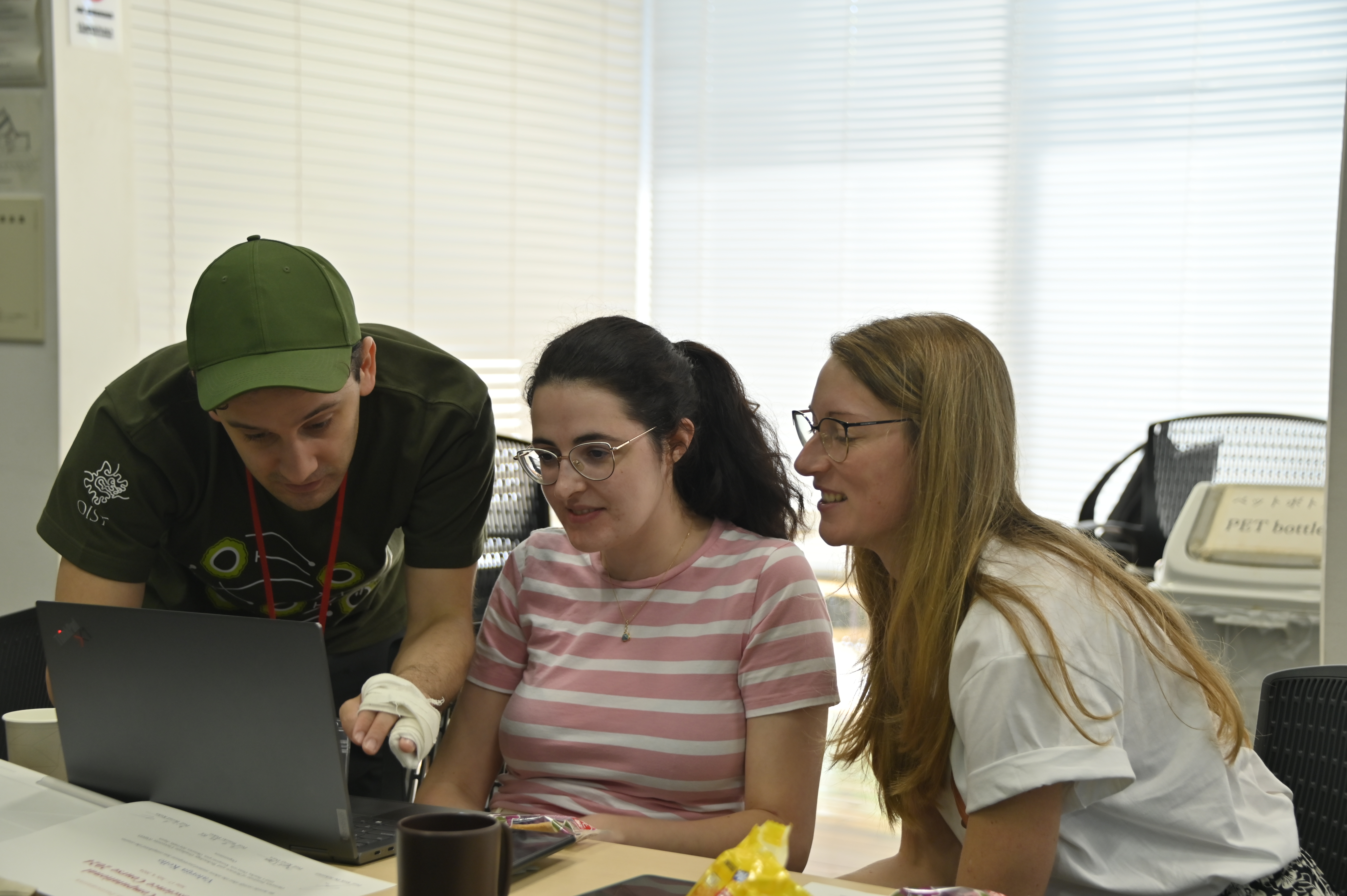 サマースクールの最終日までプロジェクトの最適化に向けて協力するOCNC '24の参加者とチューター。写真提供:OIST