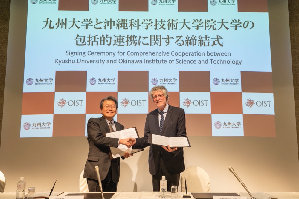 OIST臨時学長と九州大学総長 3月27日、福岡市内において包括連携協定締結式が行われ、石橋達朗 九州大学総長(左)、アルブレヒト・ワグナー OIST臨時学長(右)が協定に署名した。 日付: 2023年3月27日 九州大学広報室 全解像度画像をダウンロード シェア: Related Images 2013年5月27日に講堂にて講演を行うマイケル・ベリー卿 2013年5月25日、OIST講堂にて350名を超える聴衆を前に講演を行うマイケル・ベリー卿 OIST常勤英語講師のケビン・ハント先生(2013年6月16日、OIST Café in 東京) OIST Café で志望理由書の書き方について話すOIST常勤英語講師のケビン・ハント先生。OIST Caféは、国際的な環境での研究や英語でのコミュニケーションに関心のある理系の学生を対象に、英語スキルの習得ポイントや理系キャリアのさまざまな可能性を知ってもらう機会として開催しています。 ハリー・ウィルソン博士と島貫瑞樹博士(2013年6月16日、OIST Café in 東京) OIST CaféでOISTの博士課程や理系のキャリアパスについて語るハリー・ウィルソン博士(左)と島貫瑞樹博士(右)。OIST Caféは、国際的な環境での研究や英語でのコミュニケーションに関心のある理系の学生を対象に、英語スキルの習得ポイントや理系キャリアのさまざまな可能性を知ってもらう機会として開催しています。 献血を呼びかけるけんけつちゃん(2013年6月19日) 2013年6月19日、OISTにて初めて献血が行われ、多くの研究者や職員が協力しました。