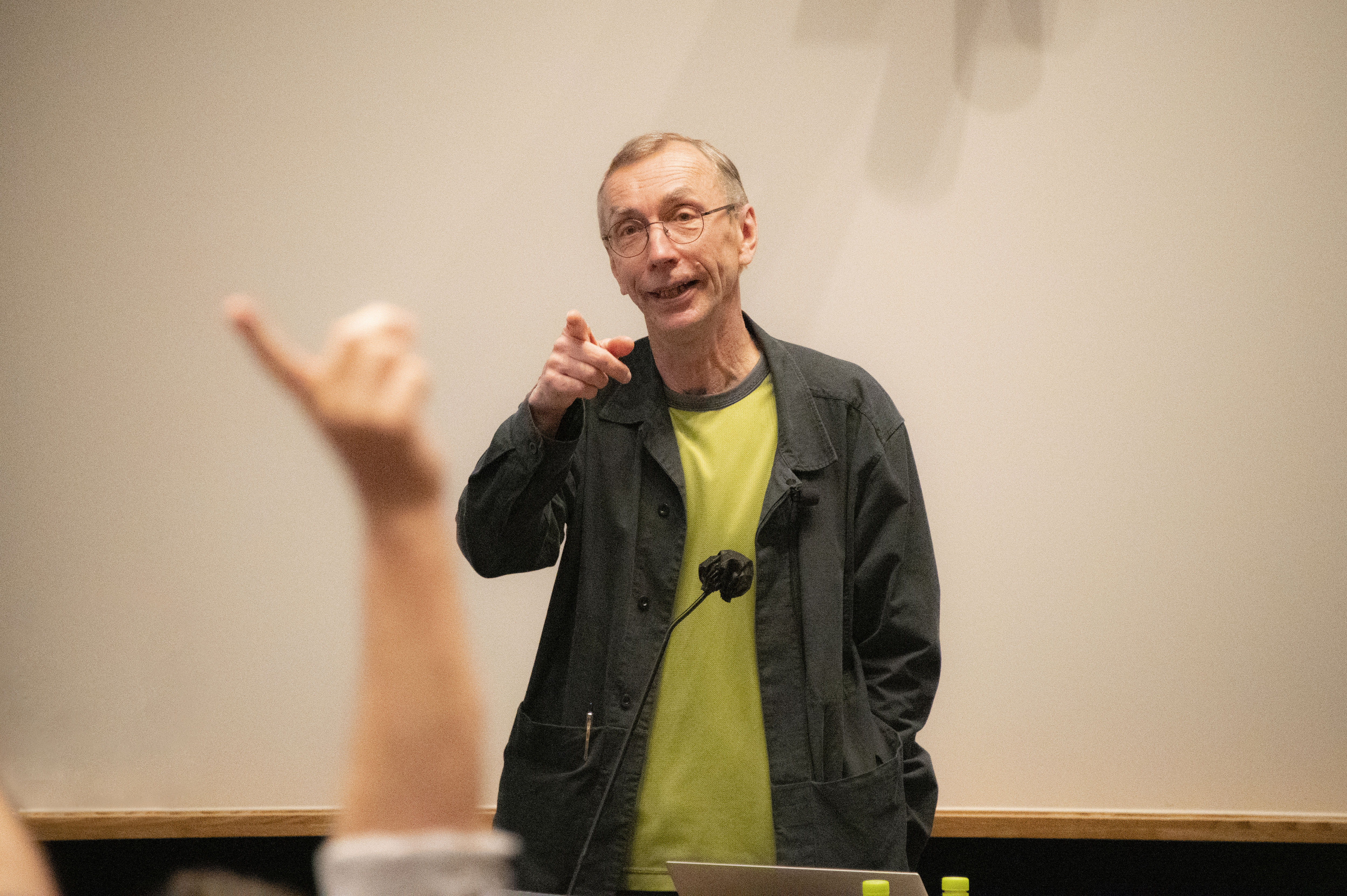 2022年4月20日に行われた「OISTランチタイム・ファカルティセミナー」での講演で、聴衆の質問に答えるスバンテ・ペーボ教授。