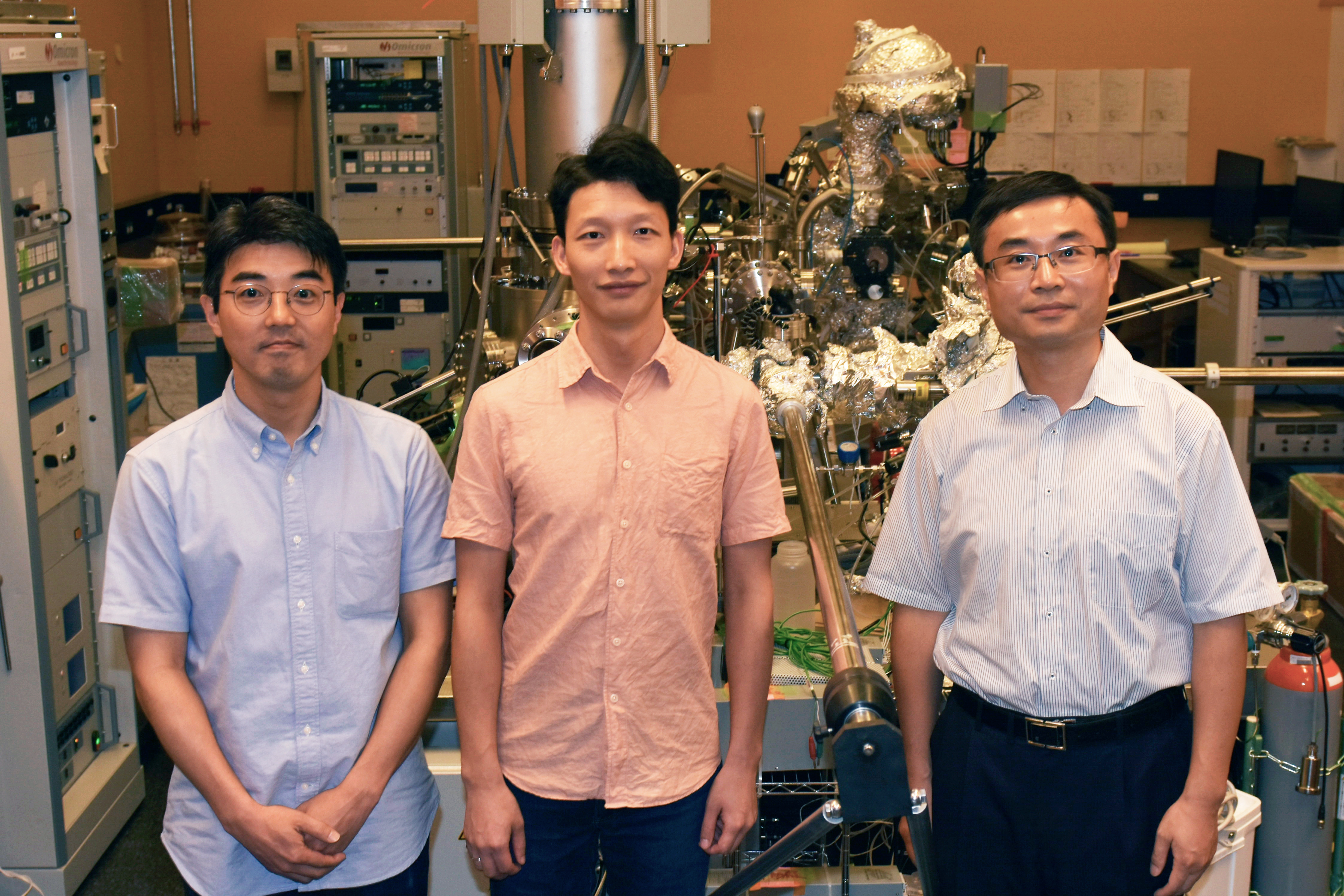 左から大野ルイス勝也グループリーダー、筆頭著者の一人チュウ・ロンビン研究員、ヤビン・チー教授(ともにOISTエネルギー材料と表面科学ユニット)。