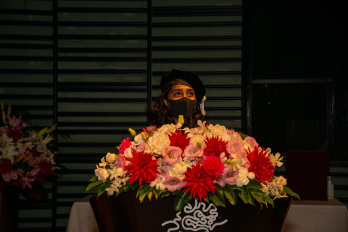 2021年度の学位授与式で、41人の卒業生を代表して答辞を述べたシヴァ二・サティシュ博士