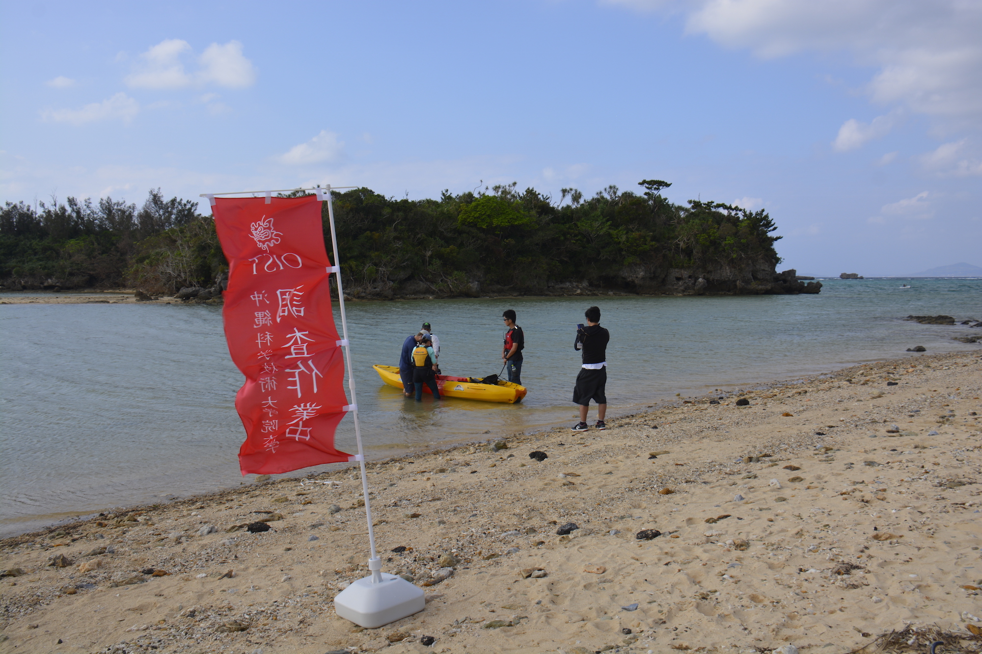 カヤックで恩納村周辺の海域を探索する大学マリーンイニシアティブ(UMI)のメンバー