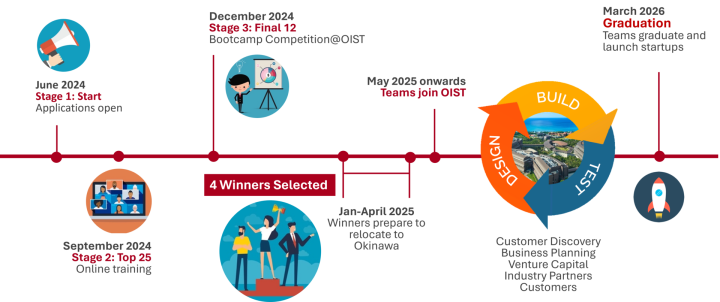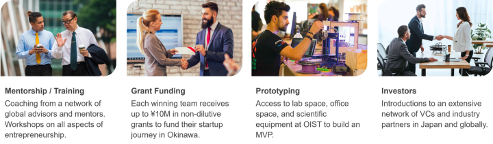 The 4 winning teams will relocate to Okinawa to build, test, and launch their startups with full backing from OIST.
