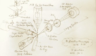 新竹教授にとってのもう1つの課題は、レンズを用いずにどのようにしてウイルスの画像を捕えるかという点です。レンズの機能は、電子ビーム、または光学顕微鏡であれば光子ビームを特定の面上に集束させて画像を形成することです。レンズはすべて、少なくともその周辺部では画像をゆがめてしまうため、新竹教授は、X線画像を作製する場合と同様に、試料を慎重に輪切りにした断面で電子を散乱させることによってウイルスの構造を推測し、これらのデータをコンピュータに収集しようと計画しています。その後、これらの断面画像を継ぎ合わせることによって、試料の内部と外部の3次元ホログラムを作成することを目指しています。