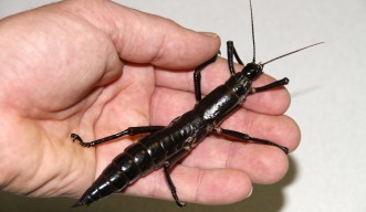 1960年代、タスマン海に位置し、周りを海で囲まれた小さな火山性の岩柱であるボールズ・ピラミッドへ向かったロッククライミングの一団が、ある生物の生き残りに関する驚くべき物語の始まりともいえる重要な発見をしました。それは、およそ30年前に絶滅したと考えられていた、ロードハウナナフシと思われる生き物の新しい死骸でした。1918年に、ロード・ハウ島の近海で難破した船からクマネズミが侵入して島の生態系に影響を及ぼしたため、ロードハウナナフシはこの島から消えてしまったのです。島には固有の陸生哺乳類が存在していなかったことから、クマネズミは、ナナフシを絶滅に追い込んだばかりか、鳥類5種と12種のその他の昆虫を一掃したのです。このときの一団による発見後、2001年にボールズ・ピラミッドの調査が行われ、海抜65メートルの段丘の頂上に生育していた一本のフトモモ科ティーツリーの木を常食とする、複数の生きたナナフシを発見しました。そして、その一年後の再調査では、前回と同じ場所に生えていたティーツリーの一群の周りに生息するナナフシ合計24匹を発見したのです。調査隊は、さらに研究を進めるためいくつかの個体群を持ち帰り、メルボルン動物園で飼育環境下での繁殖プロジェクトを開始しました。