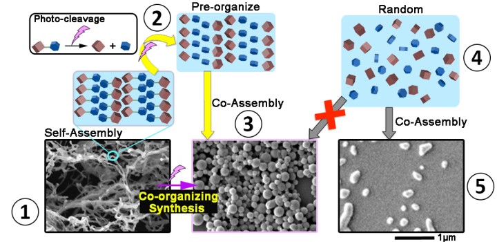 「本研究は、材料科学分野において新たなコンセプトを提唱しています。私たちは光を用いて、空間的・時間的に制御可能な方法で、自己集合現象を、結合現象に変換させました。そうして、従来の合成経路では不可能であったエキゾチックな異なる分子からなる新たなナノ構造を作り上げることに成功したのです。」と、本研究の著者で生体模倣ソフトマターユニットのイェ・ジャン准教授は説明します。