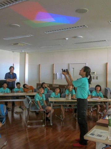 1-3年生のクラスでは、OIST技術員のアイシェン・ギュルカン・オーシャさんと静電気について学び、富名腰敬さん担当の3-4年生クラスでは、ミニプロジェクターの工作を通して光の特性を学習しました。