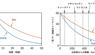本研究では、過去半世紀に上陸した北大西洋のハリケーンを分析し、現在のハリケーンが、上陸後の最初の1日の間に、50年前と比較して勢力が弱まる速度が約2倍もゆっくりであることを発見しました。