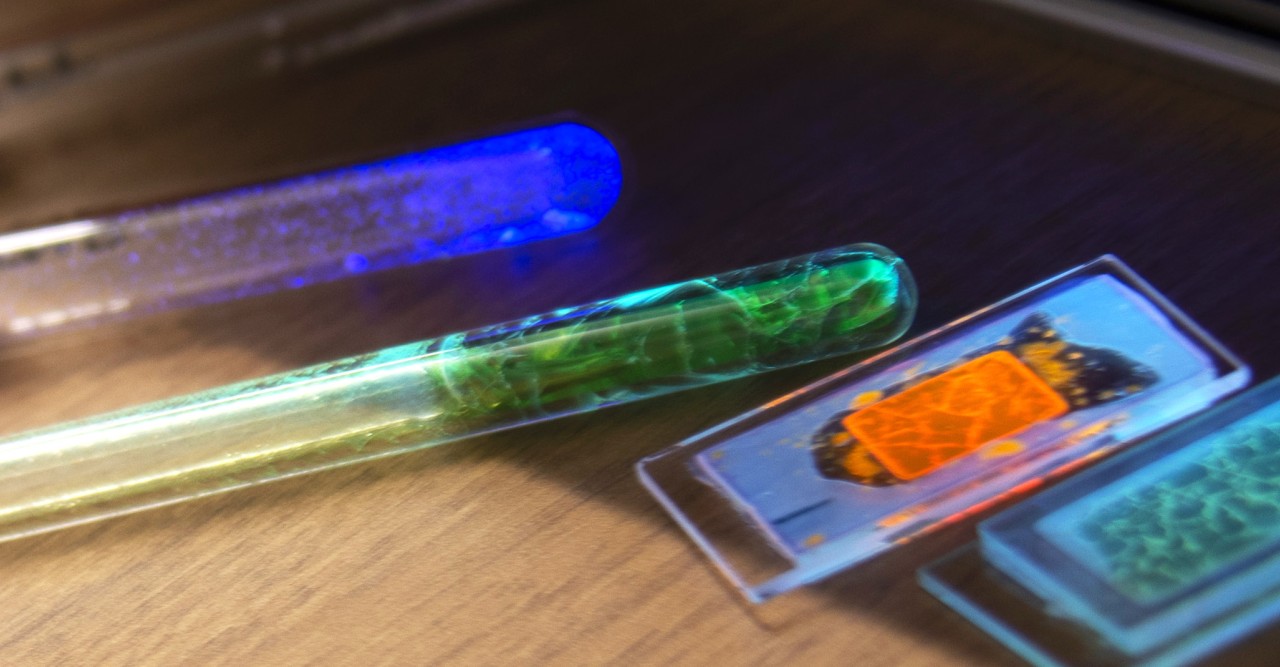 「材料の構造にもよりますが、2種類の材料を混ぜると新たな機能を持つようになります。このような材料はあらゆる種類の非常灯、塗料、インクに利用することが可能です。通常は高温処理が必要ですが、私たちが使う材料はすべて有機材料であるため、安価に、かつ効率的に製造することができます。」と嘉部准教授は説明します。