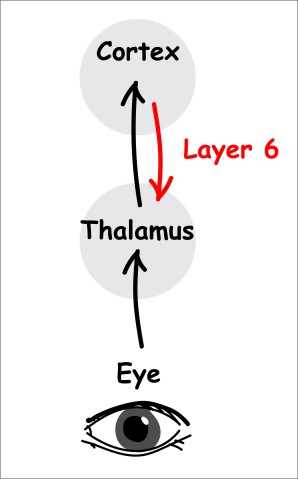 例えば、視覚情報の流れがある場合、VSAニューロンは皮質外の脳の他の部分に情報を送信します。しかし暗闇の中であれば、皮質下の領域は皮質で何が起こっているかを知る必要があります。そこでVSSニューロンが引き継ぐのです。第6層のニューロンの活性は、感覚器官から皮質への情報の流れを調節し、それにより、注意を払うか、又は集中しなくなるか、という選択肢の重要な要因の一つとなるのです。