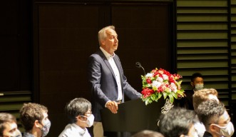 OISTのピーター・グルース学長はスピーチで、世界が今直面している多くの地球規模の課題を取り上げ、なぜ今、科学者や学生、さらには科学研究がこれほど重要なのかを説明しました。