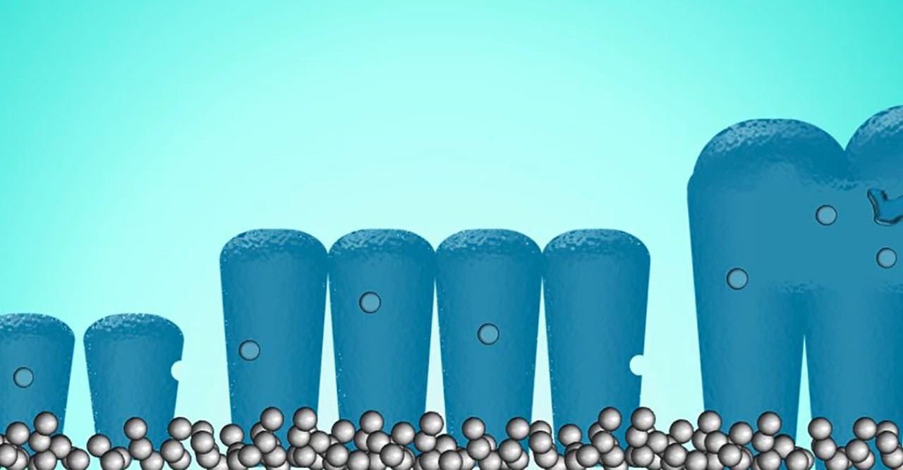 顕微鏡技術の使用と原子レベルでのコンピューターシミュレーションを行うことにより、シリコン原子がナノ粒子の層に堆積する際に、均一な膜が形成されないことが明らかになりました。実際には、シリコン原子は倒立円錐形の柱を形成し、堆積するにつれて、柱の幅が徐々に増していきました。最終的には、シリコンの柱同士が互いに接触してアーチ状構造を形成しました。