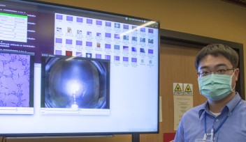 「芭蕉布には通気性が非常に良いという特徴がありますが、これは糸の原料として使われるイトバショウの部分に、繊維細胞が多く含まれていることが関係しています。繊維細胞は長い空洞の管のようになっており、その穴は汗を蒸発するのを助けるので、涼しくてさらりとした布になるのです」と説明するのは、OISTサイエンス・テクノロジー・グループの研究者である野村陽子博士です。野村博士は、OISTイメージングセクションの小泉好司博士の協力の下で、この素材の構造と化学的な特性の研究を行っています。
