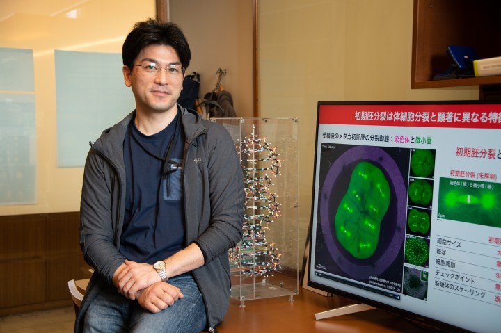 そこで清光准教授は、ヒトとよく似た遺伝子をもつメダカを使い、初期胚分裂のメカニズムを研究する新しい実験手法を確立し、これらの謎の解明に取り組みます。