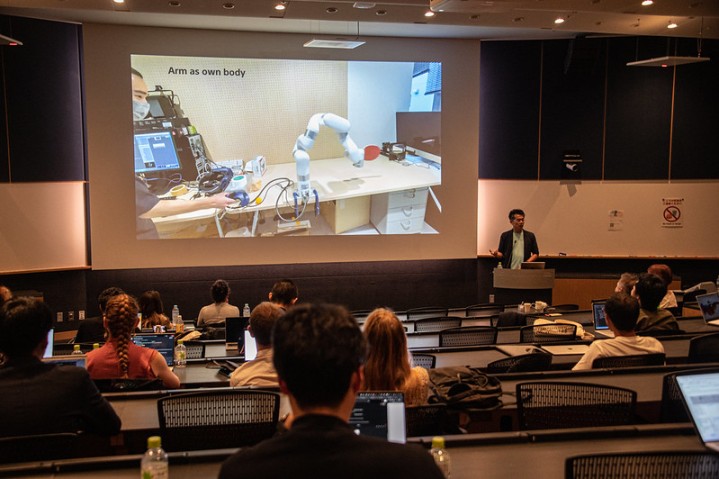 本セミナーは、在日フランス大使館より資金提供を受け、OISTのTSVPが、最近OISTの客員研究員に着任したソニーコンピュータサイエンス研究所の笠原俊一博士の協力を得て開催しました。笠原博士は、「私たちは、新しい技術や能力、身体を得られるようになるでしょう。しかし、どのようにしてそれらを主観的に自己として認識できるのでしょうか」と問いかけました。