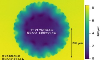 この研究でチームは異なるサイズのダイヤモンドウィンドウを作製し、ウインドウ部分に張られたフィルムの湾曲した縁の周辺に形成されたしわの波長と数を測定しました。