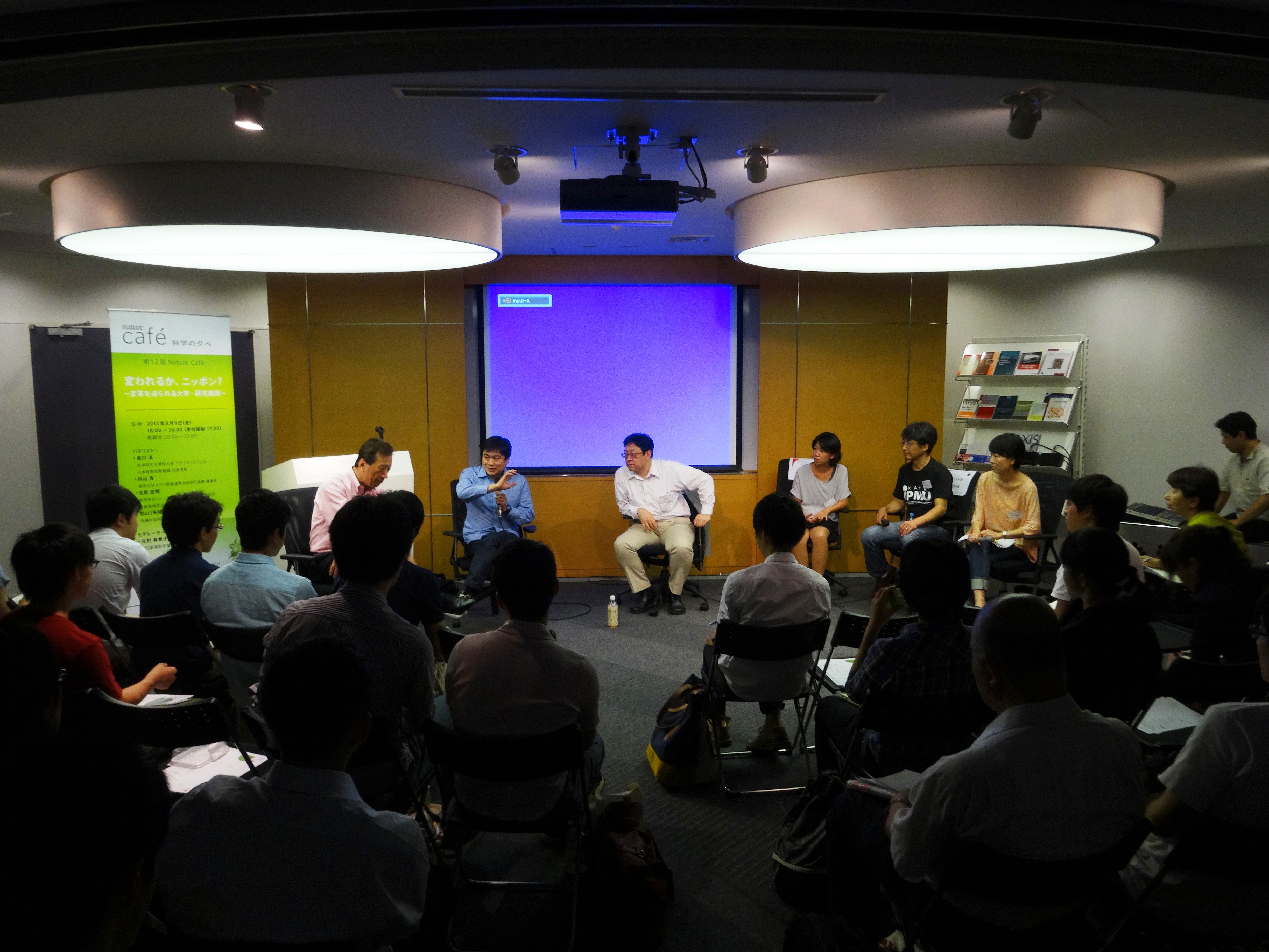 パネリストたち(左から2番目が伊藤穰一MITメディアラボ所長、9 Aug 2013 Nature Cafe)
