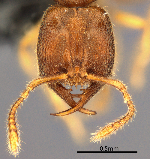 Bannapone scrobiceps の頭部。頭部にある2つのくぼみが特徴的です。