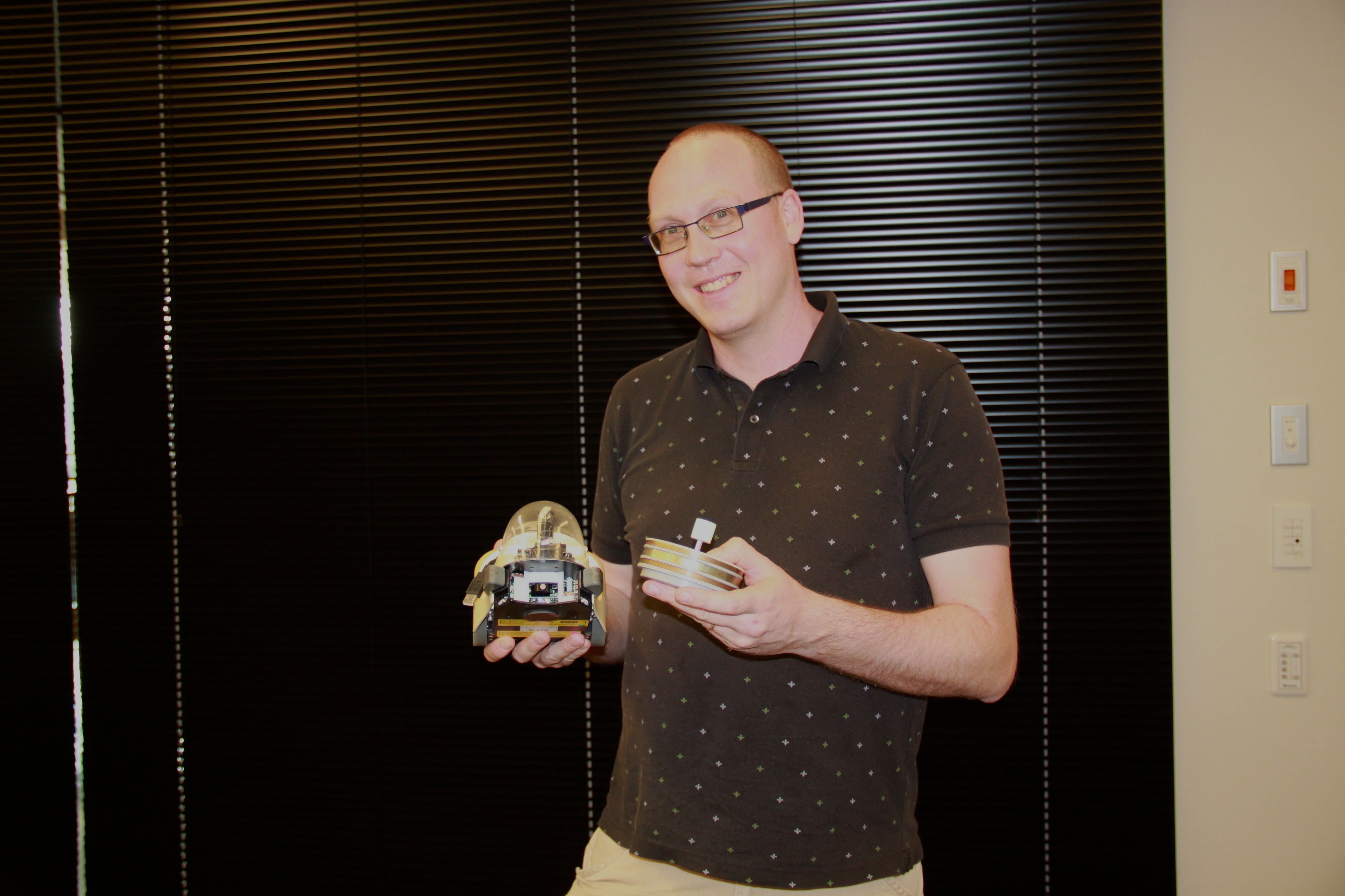 ロボット「サイバーローデント」を手にしたステファン・エルヴィング研究員
