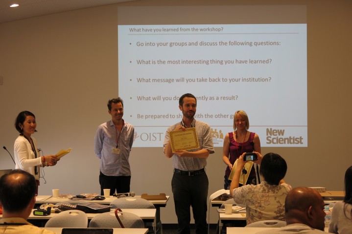 国際科学広報サマースクールで、修了証を受け取る参加者