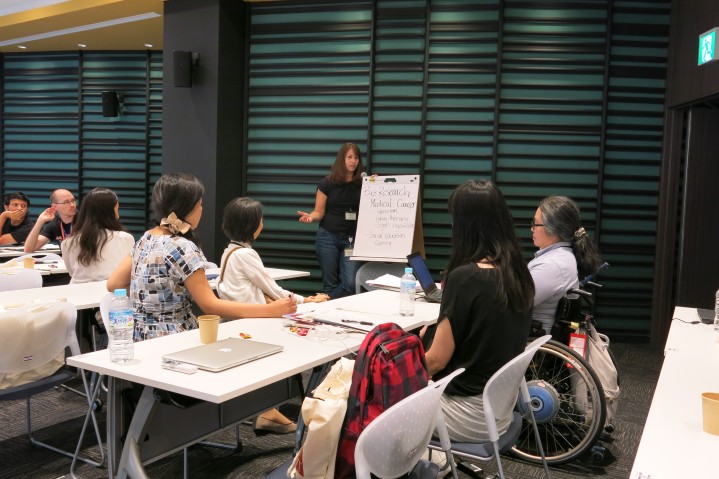 国際科学広報に関するサマースクールでのグループディスカッション。活発な意見交換が行われた。