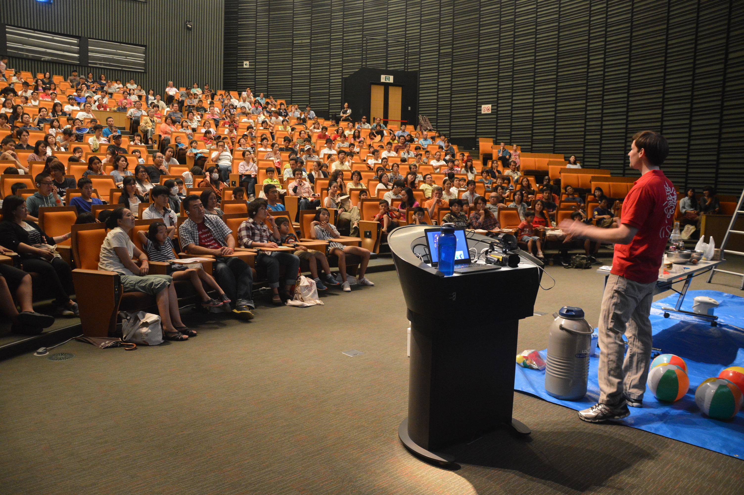 博士課程学生ジェームス・シュロスによる「身の回りにある物理」をテーマにしたサイエンス・ショー。OISTオープンキャンパス2015