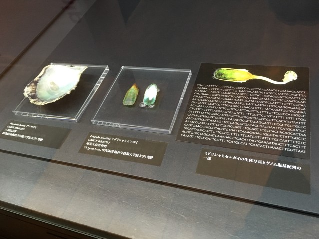 東京大学総合研究博物館の常設展示「知の回廊」に展示されている、OISTマリンゲノミックスユニット所属の研究者提供による標本。