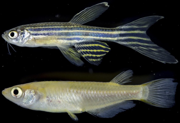 ゼブラフィッシュ(上)とメダカ(下)