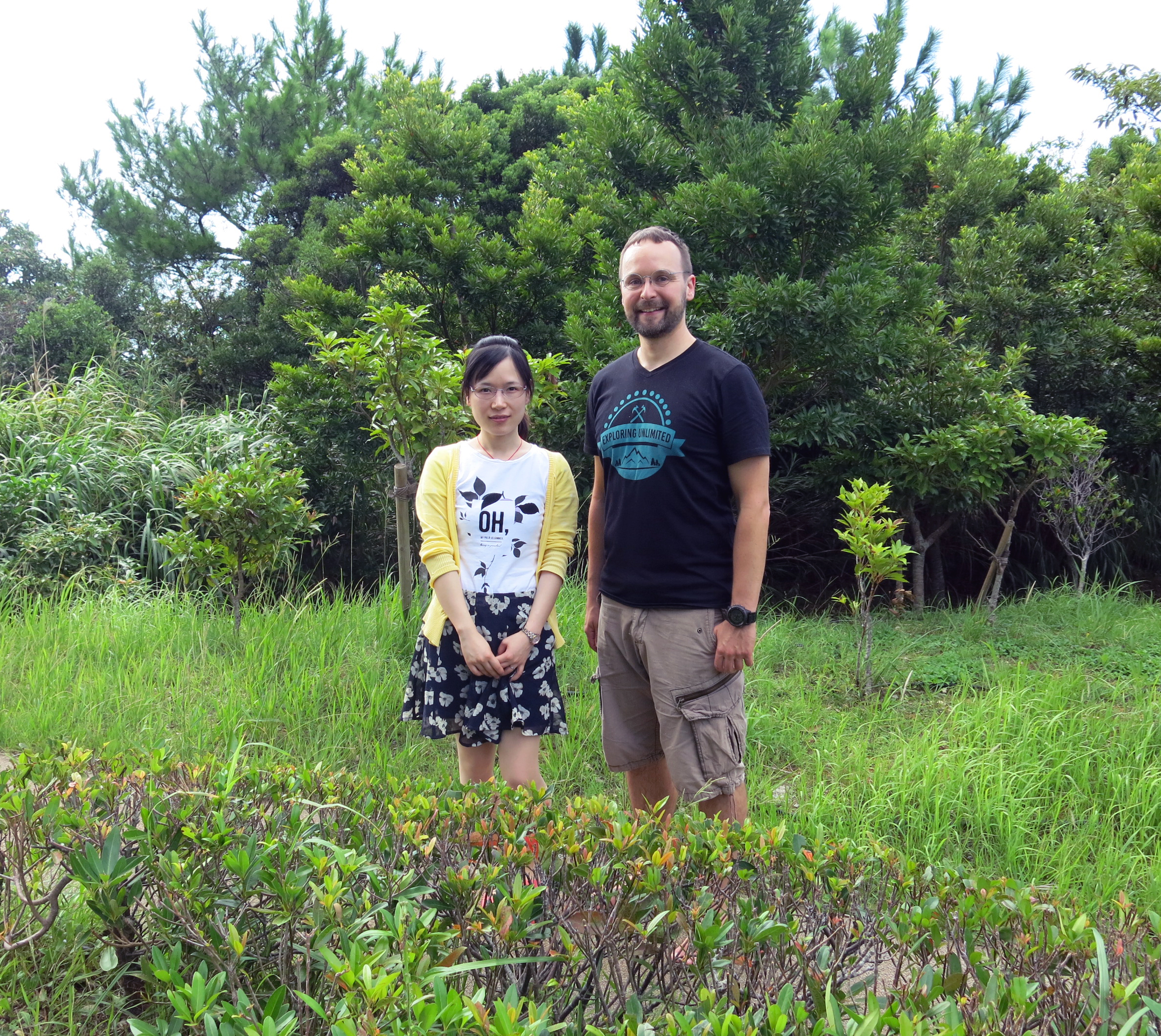 左から、OIST生態・進化学ユニットのリージュン ・チュウ技術員とアレクサンダー・ミケェエヴ准教授