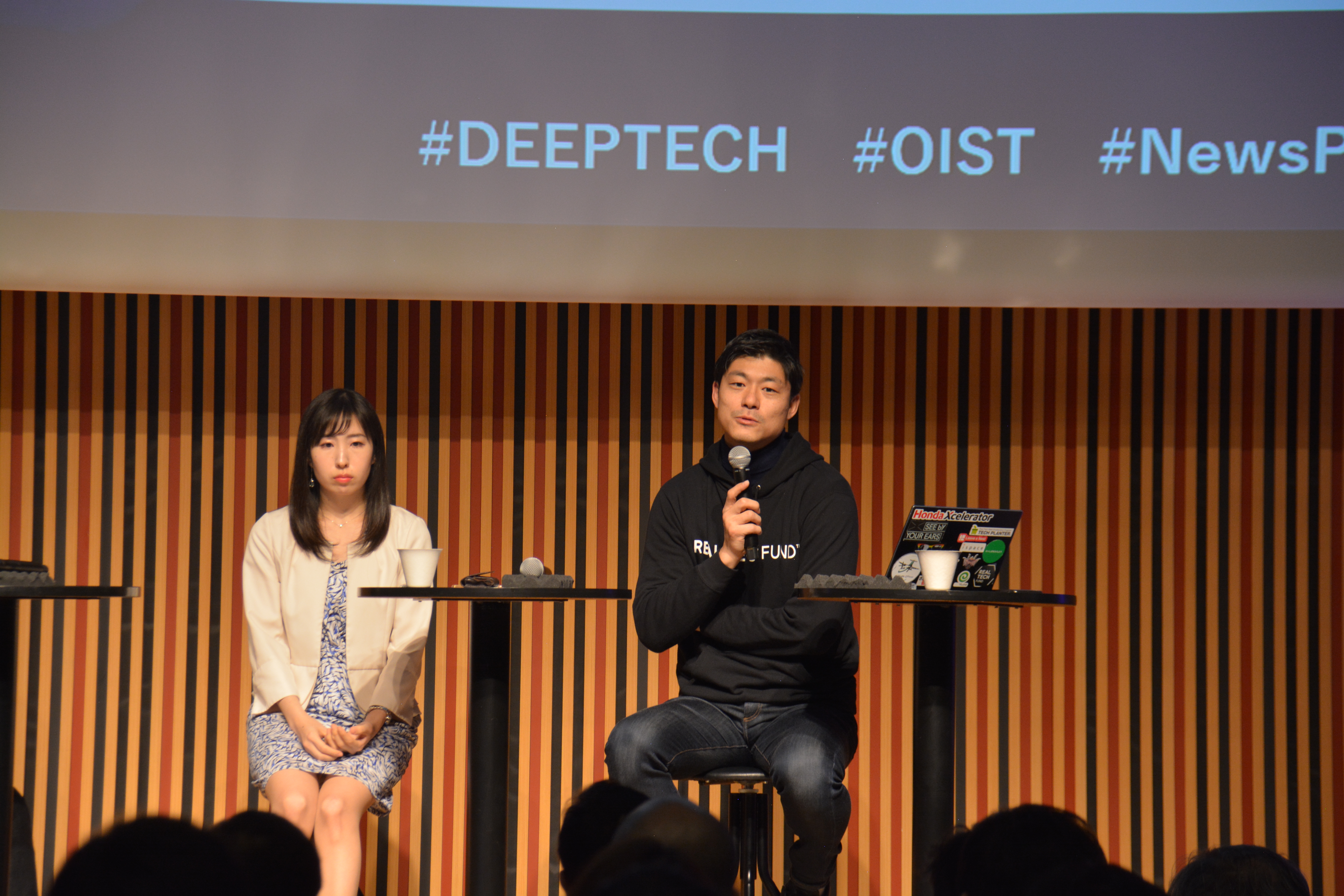 投資家としての立場から、「研究者には、輝け、と伝えたい。視野の広い投資家は、コネクター(組織の垣根を越えてさまざまなキーパーソンを繋げる人)として、世界中の輝く研究を、ファイナンスやマーケティング、契約の得意な人たちと繋げている。」と述べた永田暁彦氏。(株式会社ユーグレナ取締役副社長/リアルテックファンドファウンダー)