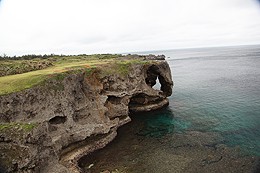 The raging waves that surge up to the cliff and the view of the emerald sea offer a magistic scene for visitors. The name “Manzamo” originated from King Shokei of the Ryukyus, who visited this land in the 18th century and praised it as “a ‘mo’, spacious enough to have all people take a seat”. “Mo” in the Ryukyuan dialect means field. As its name suggests, natural turf extends across the whole surface.