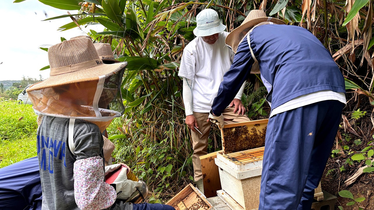 うんな中学校サイエンスクラブ ハニー&コーラルプロジェクト 引き続き蜂箱の内検を行いました。この時期は、毎週の内検がかかせません。新入部員も先輩に教わりながら、内検に挑戦しました。 日付: 2024年5月2日 カテゴリー: 出前授業 対象者: 中学生 担当 研究科 お問合せ先 science.outreach@oist.jp シェア: 関連記事 地域連携・科学教育ニュース 鳥取県立米子東高等学校のOIST訪問 2022年12月2日、鳥取県立米子東高等学校の生徒がOISTを訪れました。 地域連携・科学教育ニュース 沖縄県立向陽高等学校への出前講座 2023年2月16日、沖縄県立向陽高等学校へ出前講座を行いました。 地域連携・科学教育ニュース 山脇学園高等学校(東京)のOIST訪問 2023年5月11日、山脇学園高等学校の生徒が東京からOISTを訪れました。 地域連携・科学教育ニュース うんな中学校サイエンスクラブで養蜂活動・花粉採集器を設置 うんな中学校サイエンスクラブでの活動 地域連携・科学教育ニュース うんな中学校サイエンスクラブで養蜂活動・畑のメンテナンス うんな中学校サイエンスクラブでの活動
