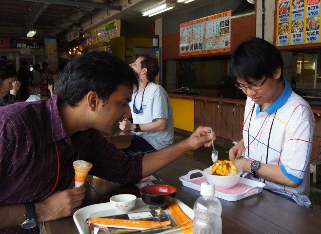タナチャイ・スーントーンウティクルさんと評判のマンゴーぜんざいを分け合うアナント・ジェーンさん
