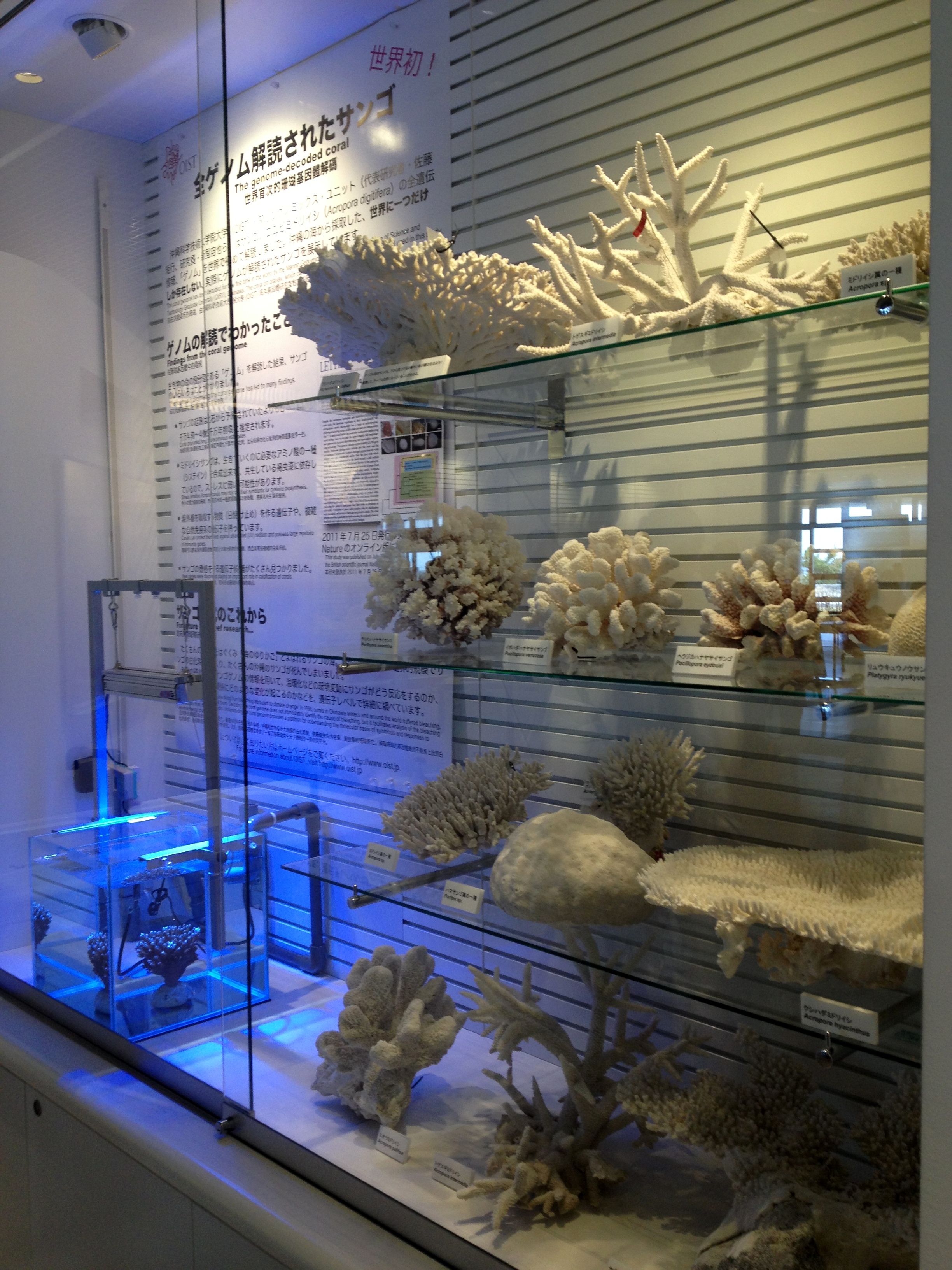 美ら海プラザに展示されているOISTのサンゴ