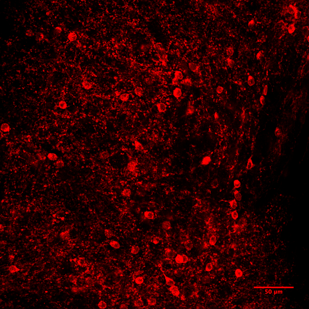 この画像はシウェイ・フアン研究員とマリルカ・ヨエ・ウーシサーリ研究員がFrontiers in Cellular Neuroscienceに掲載された論文で紹介した加温解剖法と、一般に用いられる光遺伝学技術を組み合わせたもので、光遺伝学技術では神経細胞の遺伝子が蛍光を発するように操作され、長時間にわたって神経活動を研究することが可能です。