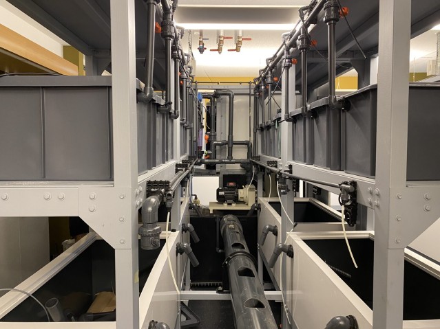 This year has been one of finishing setups and expanding our species of interest. Our cephalopod husbandry system was one of the first things we ordered, but had been hit with many logistical challenges. Suppy chain related part delays, getting held up in the Suez Canal when it was blocked, pandemic related travel problems...throughout OIST admin was wonderfully supportive and flexible. And now at long last, the manufacturers Luxaqua are here and assembling the system! Here is a picture of 2 of the new racks. The bulk of the system is down at the OIST marine station, with some racks up in lab 4 for keeping a subset of animals for experiments. Over the last year we have fitted out the lab for this, with seawater pumped in from the ceiling to feed these closed loop life support systems.