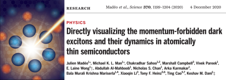 Dec. 4: Julien's paper on directly visualizing momentum-forbidden dark excitons and their dynamics published in Science! This work was highlighted in a Perspective in the same issue and featured in Physics Today.