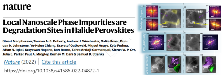 May 24: Our work with Stranks group on discovering that nanoscale phase impurities are degradation sites in halide perovskites published in Nature.