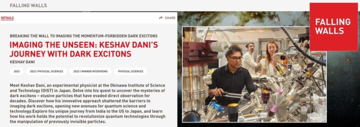 - Dec 20: Prof. Dani is one of the two OIST faculty memebers had been awarded the 2023 JSPS Prize.