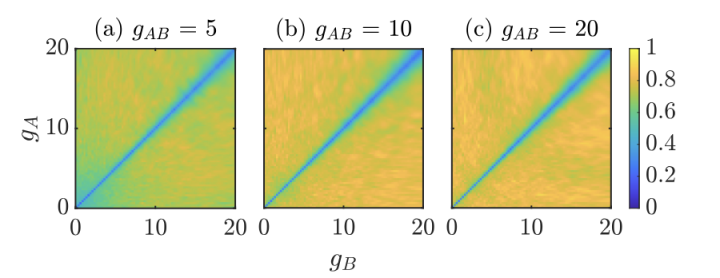 Figure: The fitted Brody distribution parameter as a function of intra-component interaction strengths for three different values of the inter-component interaction strength.