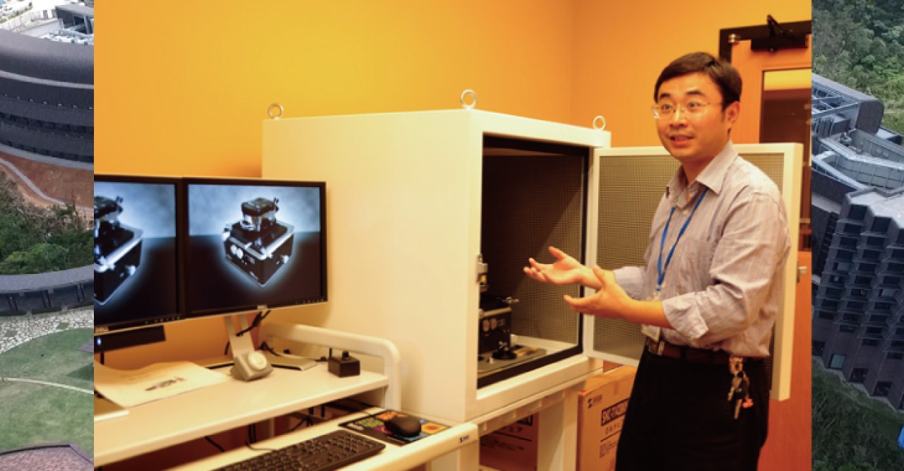Dr. Yabing Qi explains the atomic force microscopy machine he uses in his lab.