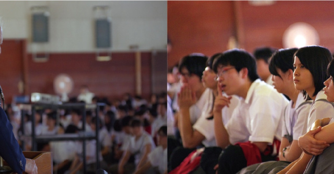 Jerome Friedman, a Nobel Laureate in physics who is a member of OIST’s Board of Governors, spoke to students at Kaiho High School, near Naha, on May 23. Prof. Friedman began his talk by telling the more than 700 assembled students, “You are made of quarks, and I’m going to tell you today about why we think you are made of quarks.” He went on to describe what particle physicists do, the tools they use, and the history of the field, as well as what quarks are (the building blocks of the protons and neutrons in the nuclei of atoms) and how they were discovered. He ended by addressing the question of whether quarks themselves are composed of yet smaller particles, which may be answered by experiments on the Large Hadron Collider (LHC) at CERN in Europe. “I would hope that some of the students in this audience would get involved in the LHC, and maybe some great discoveries will be made by students in this audience,” he said.