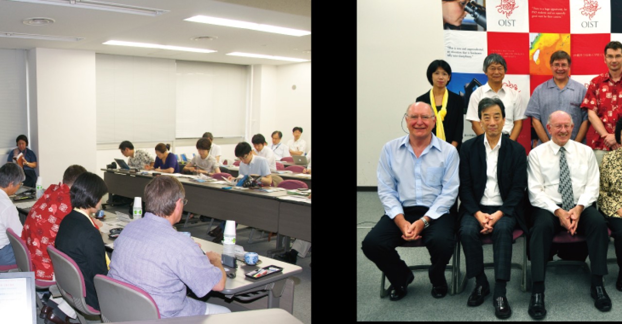 OIST Board of Governors members Dr. Kiyoshi Kurokawa and Dr. Hiroko Sho underlined the very rapid progress that had been made in establishing OIST as a top level science university. Prof. Noriyuki Satoh, Prof. Dennis Konstantinov, Prof. Yoko Yazaki-Sugiyama, and Prof. Jeff Wickens talked about their respective research, highlighting the new dimensions that had been added by interactions with specialists in other fields at OIST.