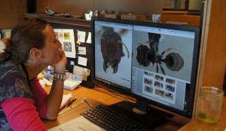 To answer that, she compares and measures the details of the textures, grooves, and ridges on the body, as well as its overall shape. She also taps into her chemical background by comparing the pheromones released from ants when they communicate with each other.  Ultimately this research may indicate how quickly ant species split, and whether change occurred gradually or in jumps.