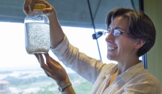 “We know what happens before typhoons, and after, as soon as it’s safe, you can get a boat out,” said Grossmann. “But we don’t know what happens during typhoons.” It’s difficult to select equipment that is sensitive enough to detect the fine morphology of plankton, but that can also withstand the force of a typhoon. The Marine Biophysics Unit has established a station off the Motobu peninsula in Okinawa that they call OCTOPUS, which stands for the OIST Cabled Teleoperational Observatory Platform for Undersea Surveillance. OCTOPUS contains a dozen ocean monitoring tools, including cameras, wave monitors, and temperature sensors. The station lies near the ocean floor, about 20 meters below the surface, and uses power from Churaumi Aquarium. “We had problems during the first typhoon with the cables,” Grossmann explained. “Some of the cables pulled out, cutting the power supply to some sensors.” In another typhoon, the aquarium lost power, preventing Grossmann from collecting any data during the storm. But by the end of the 2013 typhoon season, she had collected data from three typhoons.