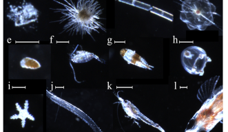 Grossmann used one device that she and unit leader Professor Satoshi Mitarai call the Continuous Plankton Imaging System. The device takes four high-resolution images every second, each focused on 30 microliters of ocean, the size of a small droplet of water. Then, Grossmann used the images to identify any living organism in the volume photographed. A computer helped with the work by cropping out all the empty space in each image. “Okinawa is oligotrophic, which means there isn’t much food,” Grossmann explained. “The water is very blue and very clear, so you can see really deep, and that means there’s nothing in it.” Still, Grossmann identified more than fifty thousand plankton for this study, including diatoms, radiolarians, copepods, isopods, and some small forms of shrimp, jellies, and fish.