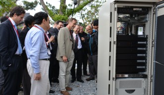 As an example of an open energy system, Kitano showed participants the direct current micro-grid system installed on OIST faculty housing. Kitano and colleagues from the Sony Computer Science Laboratories, Inc. (Sony CSL) designed the system that combines solar panels with a so-called “energy server.” Okinawa, with its’ sub-tropical environment, salty air and typhoons, provides a suitable proving ground for other island nations that might use this sort of system.