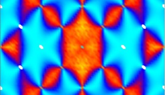 First, Dr. Ludovic Jaubert from OIST’s Theory of Quantum Matter Unit worked alongside scientists at University College London and the Ecole Normale Supérieure of Lyon to propose a model for the co-existence of both magnetic order and disorder back in 2014. By simulating what would happen when neutrons are fired at frustrated magnets – so-named because of the strong competition of forces between the spins of individual atoms – Jaubert and colleagues were able to produce brightly-colored neutron-scattering maps. If the spins in the atoms of the material were lining up in an ordered fashion in the magnet you would expect to see spots on the maps known as ‘Bragg peaks’, whereas with spin liquids you would expect to see bow-tie shapes, called ‘pinch points’. To their surprise, the scientists noticed both Bragg peaks and pinch points on their neutron-scattering maps, suggesting that the disordered properties of a spin liquid can simultaneously exist with ordered magnetism.
