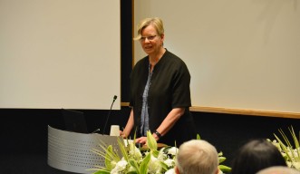 Afterward, two more speeches were given by Molecular Genetics Unit Leader Professor Daniel Rokhsar and Chair of the OIST Board of Governors Dr. Cherry Murray.