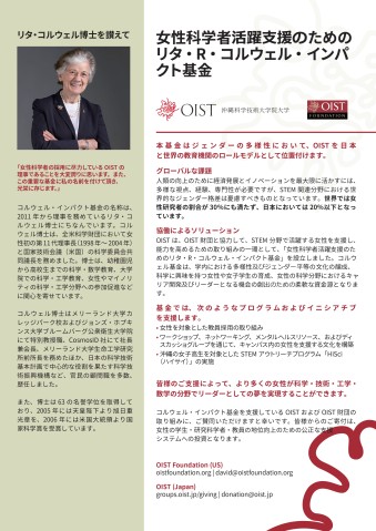To help lessen this gap, the OIST Foundation, a New York-based not-for-profit organization, in partnership with the Okinawa Institute of Science and Technology Graduate University (OIST), launched the Rita R. Colwell Impact Fund for the Advancement of Women in Science on May 19th 2021.